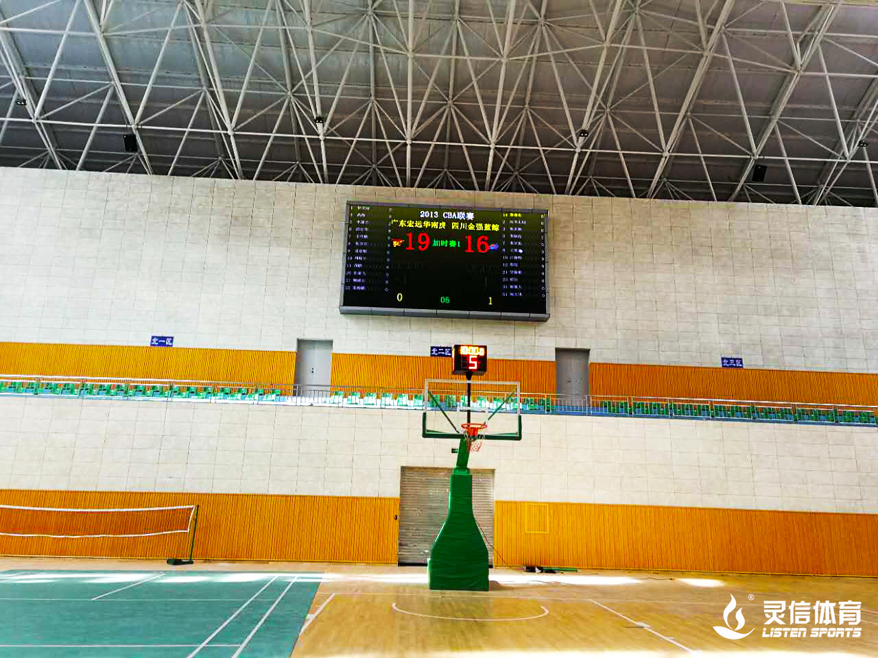 場館使用了靈信體育一套賽事計時記分系統(tǒng),該系統(tǒng)包括比賽計時記分系統(tǒng),比分直播系統(tǒng),籃球24秒計時系統(tǒng)等。